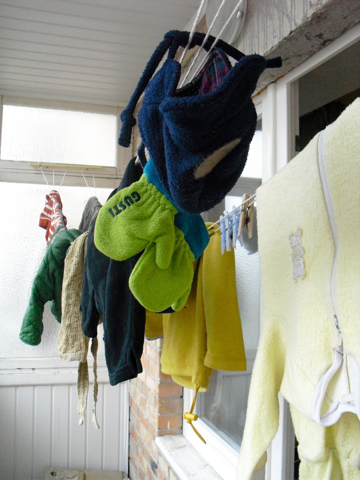 this is a picture of his cubby at the orphanage with all his outside gear, but they never let us take him outside, the other picture is what him mamas put on him just to play in the room with us, he get so hot it is so funny we defiantly have to strip him down so he doesn't get too hot.